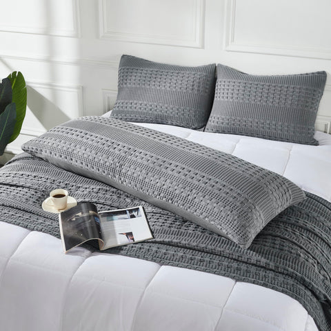 Complete The Look — Pair this versatile dark gray body pillow cover with other pieces from the Waffle Weave Collection to create a cohesive and inviting farmhouse or boho bedroom aesthetic.