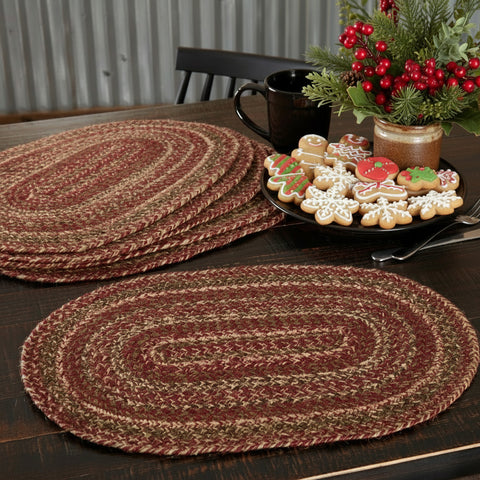 - BLENDED WARMTH: These braided placemats contain concentric, mixed braids of burgundy, natural, black, and olive green