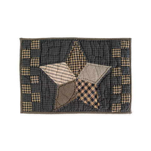 The Five Point Star Quilted Placemat is a classic country patchwork star with checkered border that provides a the ideal setting for your down-home meal. Featuring rich ebony, dark creme and tan fabric with hand quilting. Set of 6 placemats.