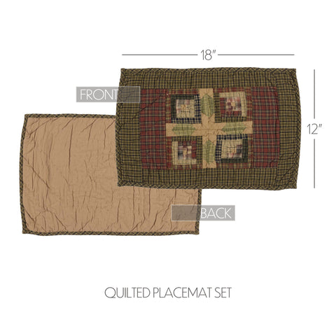 Log cabin blocks form a classic farmhouse country color combination perfectly suited to your rustic or lodge table setting. The Cabin Patchwork Quilted Placemats are hand quilted, 100% cotton and sold as a set of 6.