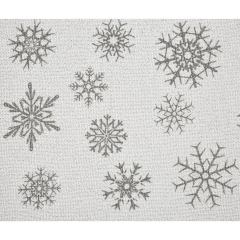 Create an elegant winter table setting with a soft white pattern with neutral gray and silver accents. The Yuletide Burlap Antique White Placemat Set includes two 13x19 inch placemats constructed with a single layer of cotton burlap fabric with metallic accents. The simple placemats feature a bold snowflake pattern in dove grey that brings the wonder of the season to your kitchen table. The antique white placemats have a lightly frayed edging for a textured, rustic look. Coordinates with the Yuletide Burlap Collection for kitchen and home accessories that add casual, neutral elegance to your holiday decor.