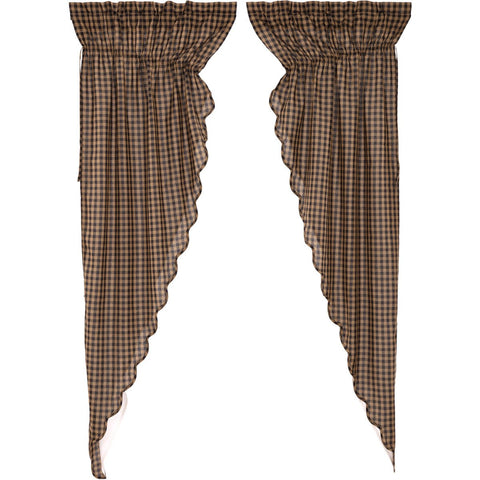 Black and tan checks are blended with faded texture at points of intersection to give a modern facelift to the classic country pattern on the Blackstone Farm Scalloped Prairie Long Panel Set. This country curtain is a great addition to your primitive style home.