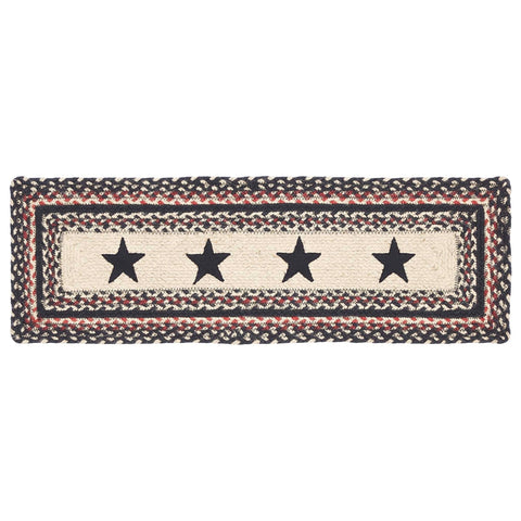 Doubling as a table runner, this stair tread makes a great addition to any household whether you have a second story or are needing to refresh a table. The bold star applique stands out on the mixture of reds and neutrals. Each stair tread is backed with latex, but it is recommended that additional security measures are taken to prevent slipping.