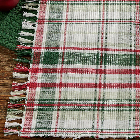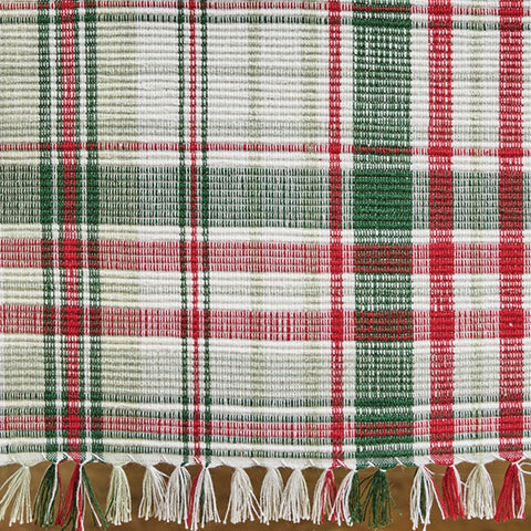 Add a farmhouse country touch to your holiday table with the Berry Frost Chindi Table Runner. 100% cotton.