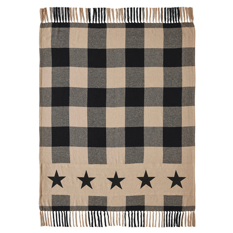 - This blanket combines a country and primitive design with a charming black check pattern adorned with stars.