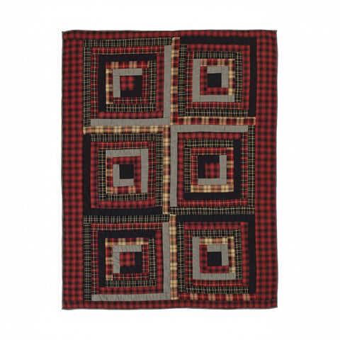 The Boone Trace Quilted Throw is the perfect piece to warm yourself next to a fire. This throw features large log cabin blocks and plaids of chili pepper reds, caviar blacks, and natural tans for the ultimate cabin comfort.  Perfect for your country, primitive and log cabin home decor.
