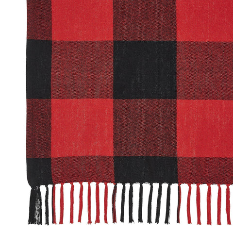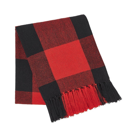 Transform your home into a cozy winter lodge with timeless plaid. The Harvy Check Woven Throw measures 50x60 inches. The classic rustic country throw blanket features soft black and classic red checked plaid. Tasseled edging adds an extra pop of texture. Coordinates with the Harper Collection for rustic country style for your whole home. Due to hand-made nature of this product, minor variations in size and color may occur. Items may shrink unevenly due to varying fabric content.