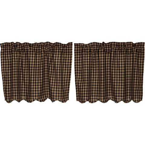 Black and khaki checks are blended with faded texture at points of intersection to give a modern facelift to the classic pattern on the Blackstone Farm Scalloped Tier L24xW36.