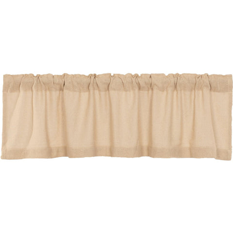Brighten your home in old-fashioned country style with the Burlap Vintage Tan Valance. Crafted in tightly woven, soft cotton burlap and finished with a standard 2-inch hem fold a the bottom, this light tan curtain transforms a room with cozy texture and warm farmhouse appeal. Place our relaxed yet fashionable kitchen curtains in any window to create rustic interest. Machine washable and iron-safe, this 100% cotton valance curtain comes with a rod pocket for easy hanging.