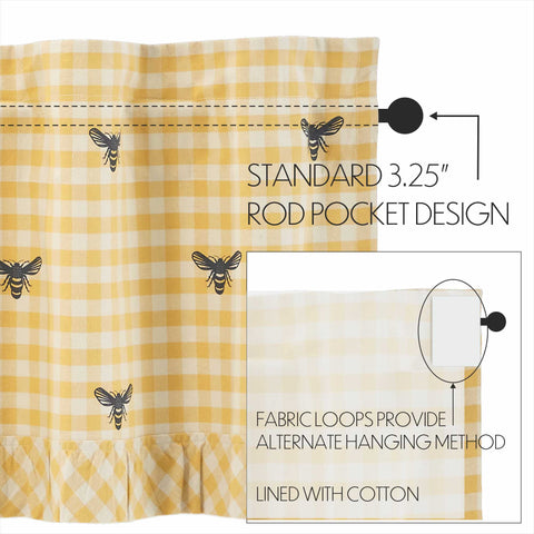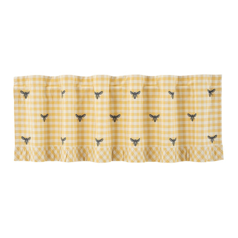 - Measuring 18x60 inches, this lined window treatment adds character to your bedroom, living room, dining room, or kitchen with its classic check pattern and delightful flying bees.