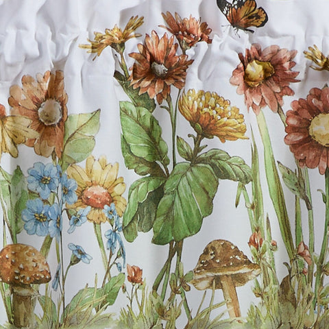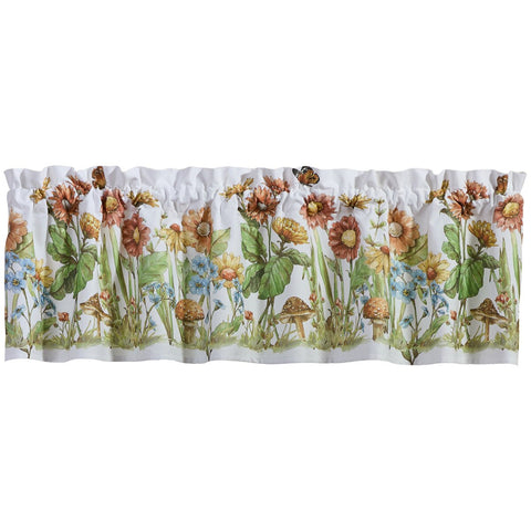Transform your windows into a whimsical garden with our Garden Glory Valance. Featuring charming flowers, delicate butterflies, and adorable mushrooms, this valance adds a touch of nature to your farmhouse country home. Enjoy the beauty of a garden all year round with this lovely addition to your décor.