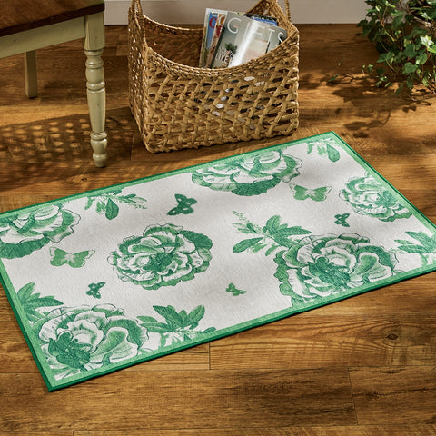 Displaying an elegant pattern of gorgeous green flowers and butterflies, the stunning scatter rug helps create a cozy and intimate living space in your home. Crafted from premium 100% poly chenille material with a non-slip backing and easy to clean machine washable feature for a durable, long-lasting accent to accessorize your everyday and spring room decor. This floral decorative rug will quickly enhance the look of your open floors while also adding comfort and character to any room. Nicely sized to fit variety of compact or roomy spaces like an entryway, kitchen, hallway or living room area.