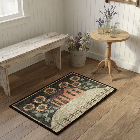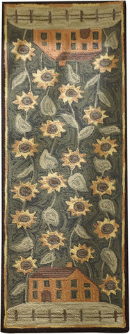 Add country sunflower charm and comfort with Sunflower Manor Hooked Rug. Features a sunflowers pattern. Suitable for all styles from farmhouse, primitive, shabby chic to modern!