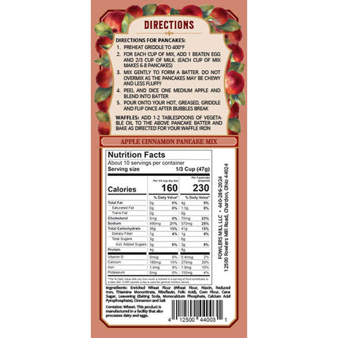 Conjure up a delicious breakfast with our Apple Cinnamon Pancake Mix! Just add an egg, some milk, and diced apples and you're ready to cook ‘em up. We guarantee that your pancakes won't be lacking in flavor, so crack open a bag and start flippin'! Makes pancakes and waffles.