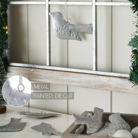 Add vintage charm and timeless elegance to your holiday decor with the Brushed Metal Bird Ornament Set of 6. Crafted from quality metal, each ornament features a delicately sculpted bird design accented with subtle vine detailing. Finished in an aged silver tone, these ornaments evoke a classic, timeworn look that perfectly complements primitive, rustic, or traditional Christmas themes. Each bird ornament is designed with a graceful silhouette and includes a soft ribbon hanger for easy and stylish placement. The electroplated silver finish gives them a subtle metallic sheen, adding a refined shimmer to Christmas trees, garlands, or wreaths. Their solid color and detailed texture create visual interest while maintaining a cohesive and understated aesthetic. Ideal for the bathroom, bedroom, dining room, entryway, kitchen, or living room, this set of six bird ornaments brings a peaceful, nature-inspired accent to your holiday display. Whether arranged as a matching set or spread throughout your home, the Brushed Metal Bird Ornaments add quiet sophistication and warmth to your seasonal decor. To maintain their finish, simply wipe clean with a soft cloth.