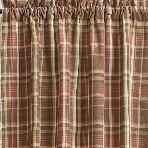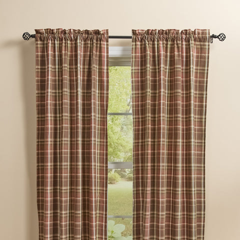 Our Sexton Panel Curtains 84" features hues of brown, white, green, tan and burgundy rose plaid.  It's the perfect blend of farmhouse elegance and country charm. Lined.