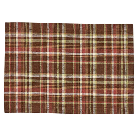 Transform any formal or casual dinner setting into a rustic seasonal paradise with our Sexton plaid placemat pattern. The staple plaid design on this country placemat effortlessly combines a farmhouse inspired hues of brown, white, green, burgundy, tan plaid color palette, providing a versatile addition to year-round primitive or fall dining room decoration. Constructed of a high-quality cotton material that effortlessly combines aesthetic appeal with functionality by offering an absorbent protective surface that will help block potential scuffs or spillages from leaving lasting impacts on your tabletop surface.